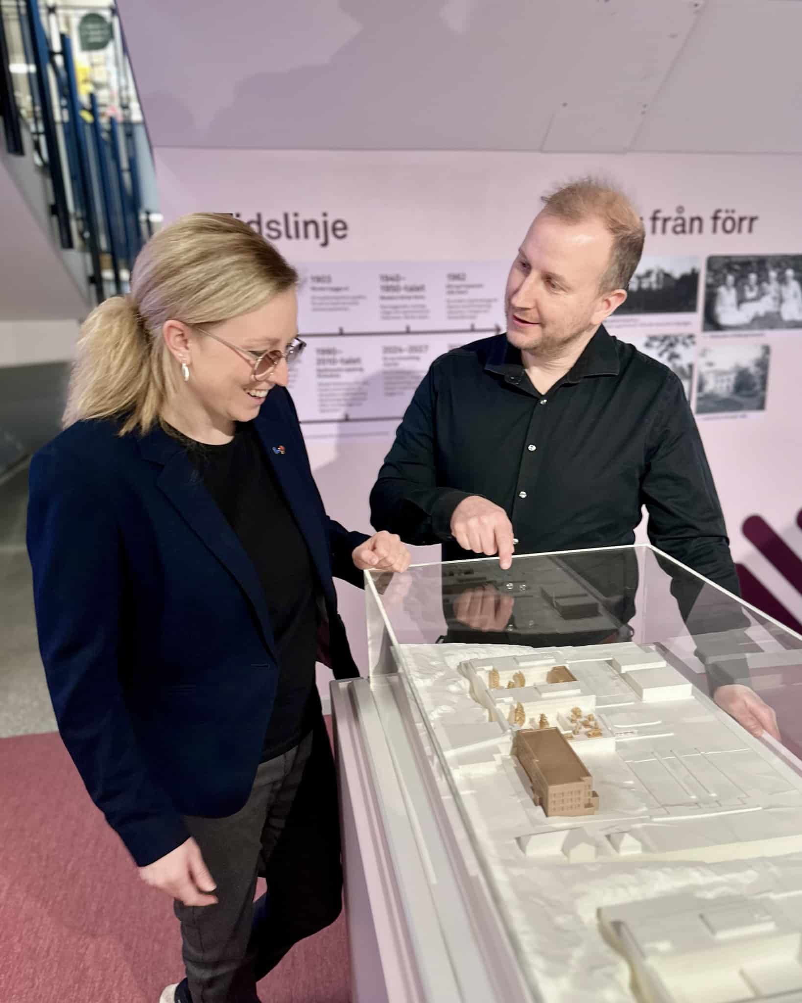 Här inspekterar de en modell av hur det ska bli.