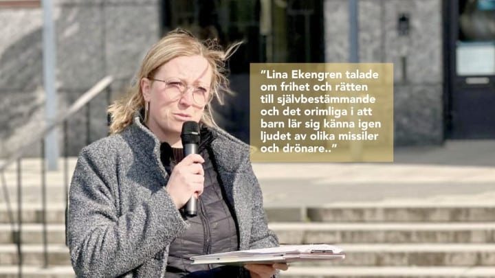 Lina Ekengren (L) talade under måndagen 23/3 i snålblåsten på Fiskartorget i Västerås där de politiska partierna varje måndag samlas för att manifestera…